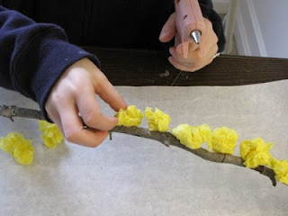 Dar cum ar fi să ne crească un copăcel cu flori de aur chiar la noi acasa? Iar florile să ne ramană galbene și strălucitoare tot timpul! Păi invătam sa ni-l facem singuri! Adunăm crengute de la taierea copaceilor de primavara, iar floricelele mesterim din hartie creponata sau chiar lână colorată?