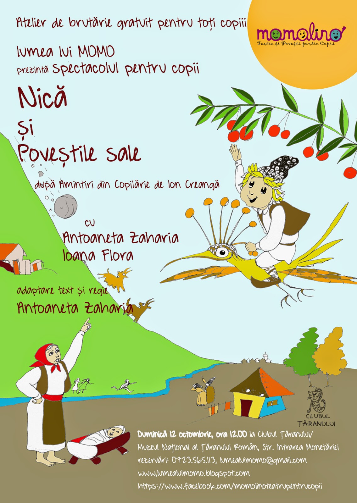 Lumea lui Momo si MOMOLINO va invita la Clubul Taranului –copii si parinti laolalta- sa descoperiti lumea fascinanta a „Amintirilor din copilarie” de Ion Creanga, spuse pe intelesul tuturor copiilor.